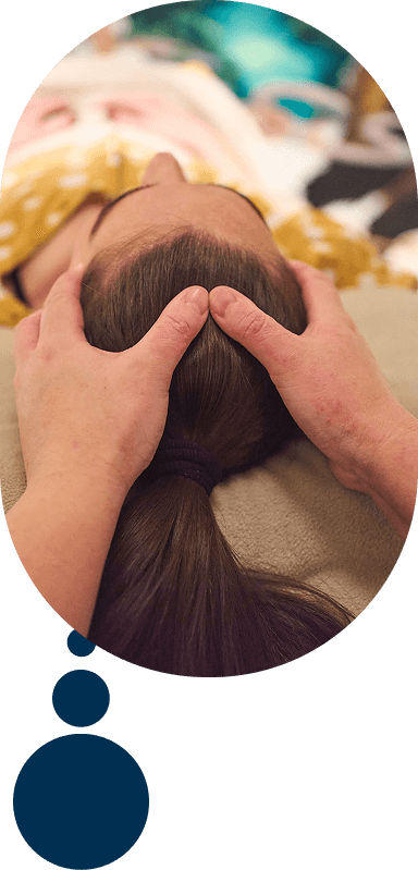 “Brain Nap” is a head, neck, and shoulder treatment designed to release deep mental tension through soft pressure and gentle touch.